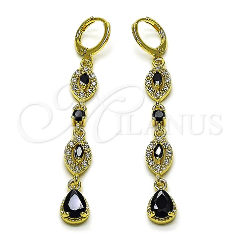 Gold Filled Long Earring.Also contains Black and White Cubic Zirconia.Great Earring for Women.Teardrop and Cluster Design.Polished.Measures: 66.0 x 7.5 x 11.5 m.