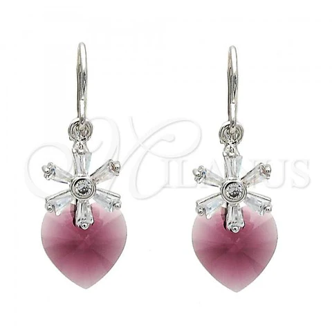 - hodium Plated Dangle Earring.Also contains Amethyst Swarovski Crystals and White Micro Pave.Great Earring for Women.Heart and Flower Design.Polished.Measures: 2 .5g