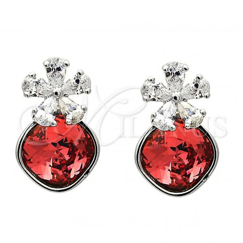 Rhodium Plated Stud Earring.Also contains Padparadscha Swarovski Crystals and White Micro Pave.Great Earring for Women.Flower Design.Polished.Measures: 21.1 x 1 …